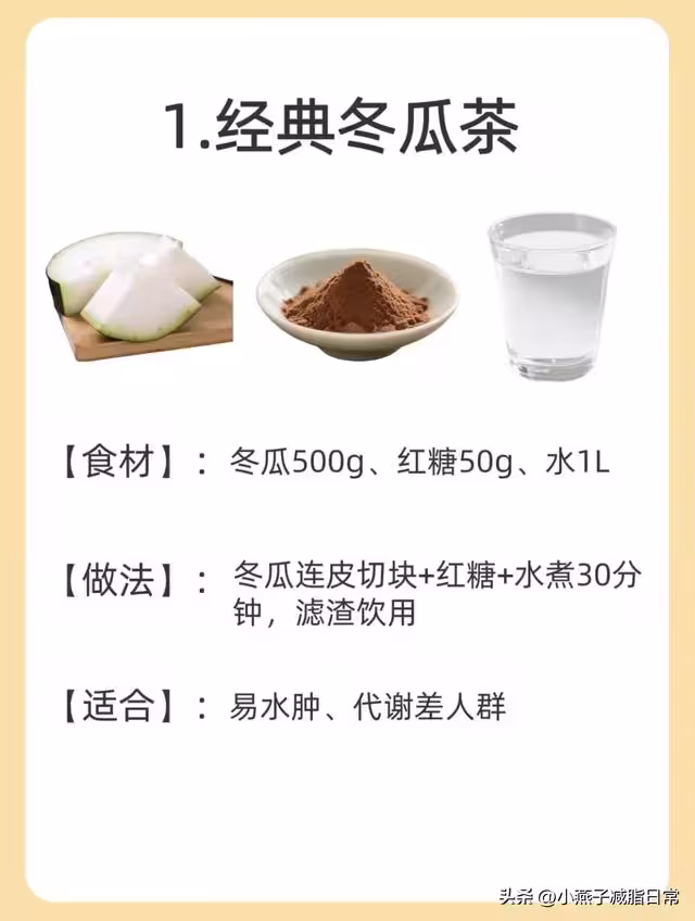 【做法】冬瓜切塊+紅糖+水,煮30分鐘濾渣喝。