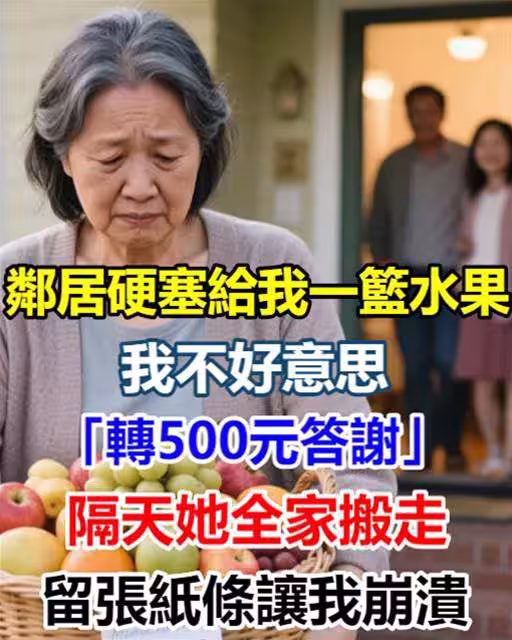 ​​鄰居硬塞給我一籃水果!!我不好意思「轉500元答謝」,隔天她全家搬走,留張紙條讓我崩潰了