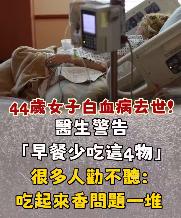 44歲女子白血病去世!醫生警告「早餐少吃這4物...」很多人勸不聽:吃起來香問題一堆