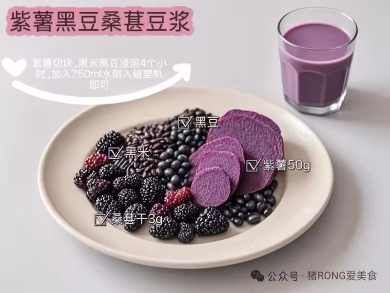 紫薯黑豆桑葚豆漿 黑豆20g+紫薯50g+黑米+桑葚干5顆