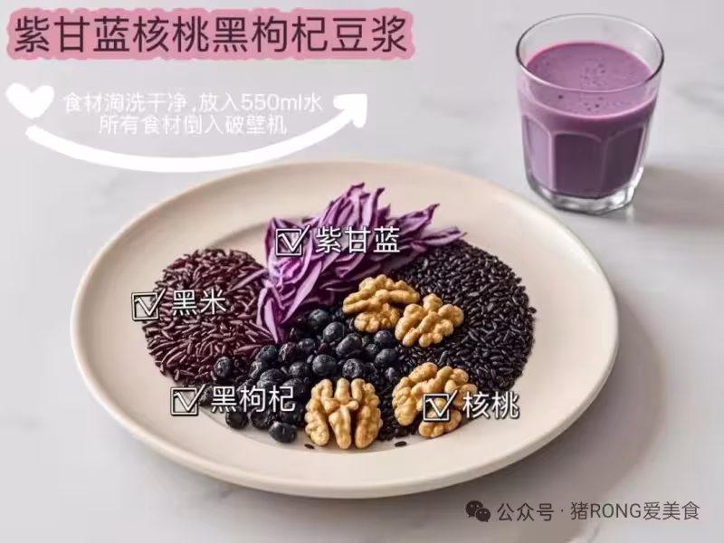 紫甘藍核桃黑枸杞豆漿 紫甘藍1片+黑米+黑枸杞+核桃4顆