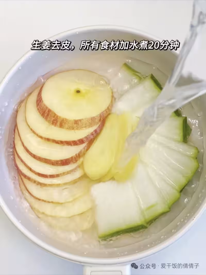 1️⃣ 冬瓜、蘋果、薑片放入鍋中;