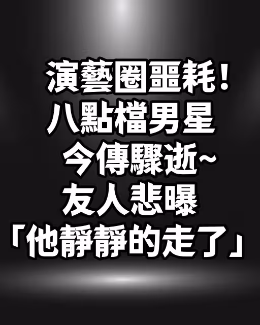 演藝圈噩耗!八點檔男星今傳驟逝~友人悲曝「他靜靜的走了...」