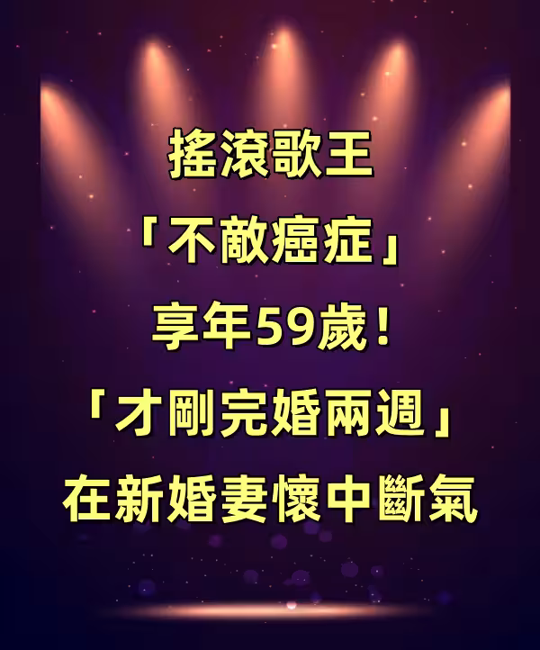 快訊/搖滾歌王「不敵癌症」享年59歲!「才剛完婚兩周」在新婚妻懷中斷氣