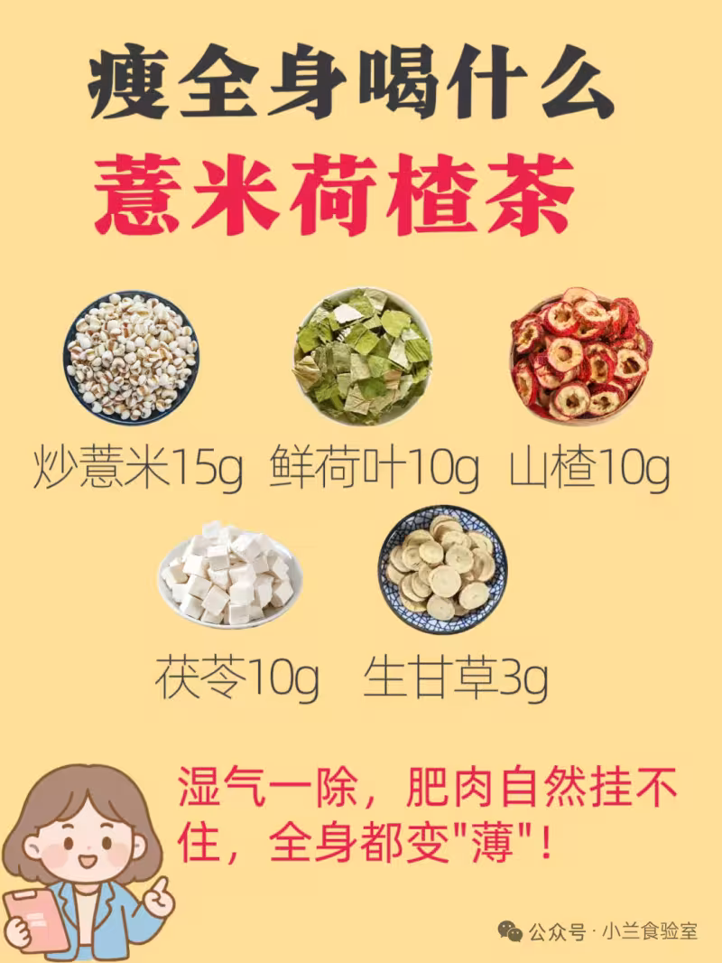 "喝薏米荷楂茶兩周,腰圍減了4cm不說,同事問我是不是打了水光針!"