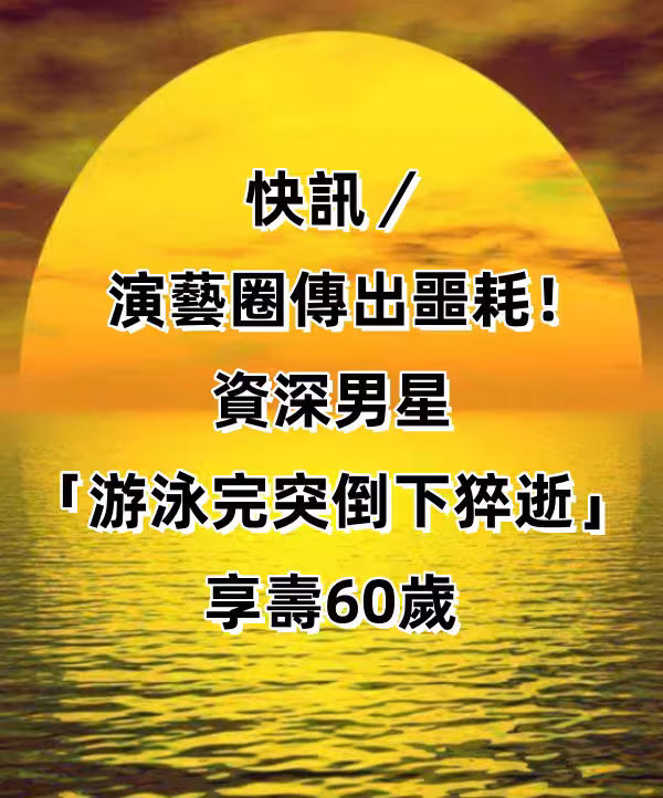 快訊/演藝圈傳出噩耗!資深男星「游泳完突倒下猝逝」享壽60歲