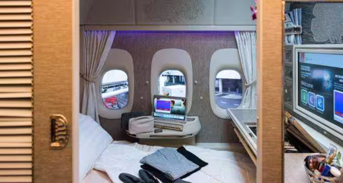 並且在你的前面還會給你提供專屬的電視熒幕和耳機來收聽音樂,或者是觀看風景節目等等。頭等艙的座位不僅大,而且很豪華,有很多智能的設備在裡面,並且每個機艙裡面的人數很少有單獨的包廂。