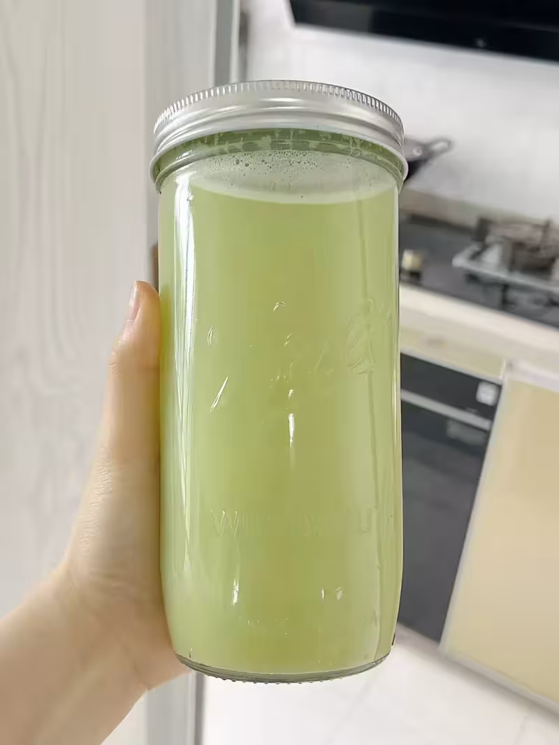我平時其實不太能吃生菜,但這樣打碎了完全嘗不出菜味,反而讓整杯奶昔更加清爽。每次家裡吃多了油膩的東西,我都會做這個喝,喝完感覺身體輕鬆不少。