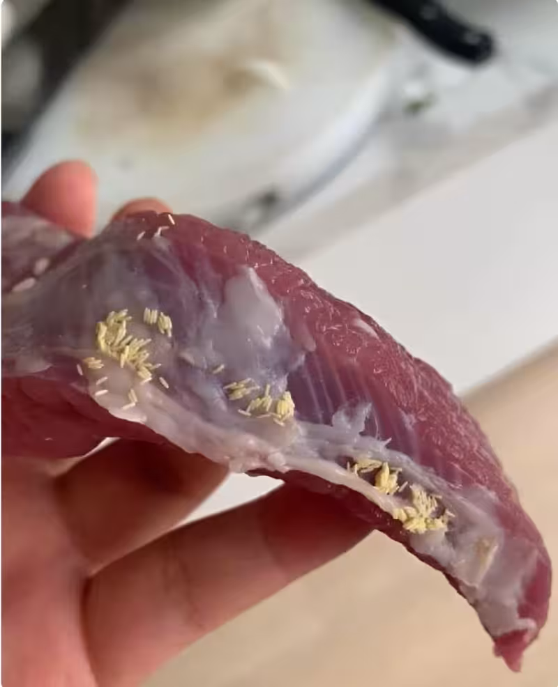 中午新買牛肉驚見黃斑!開始以為是脂肪細看「像蟲卵」,內行急喊「快做1動作」:別傻傻下鍋