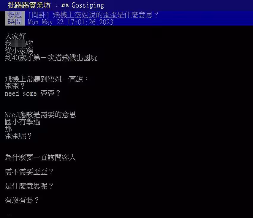 空姐一直問乘客「要歪歪嗎?」他初次搭機聽不懂不明白?!過來人全笑了