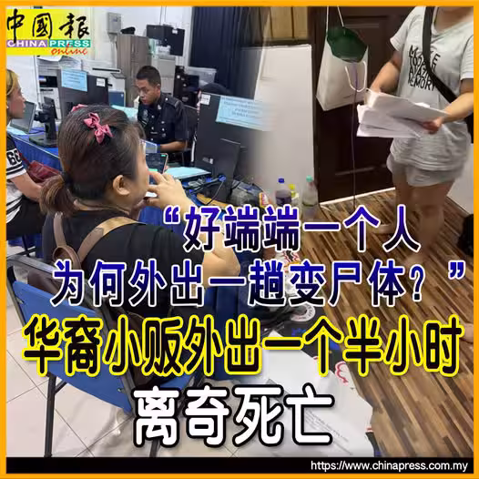 (新山2日訊)華裔碌碌車小販與一名男子外出,不料一個半小時後竟離奇死亡!
