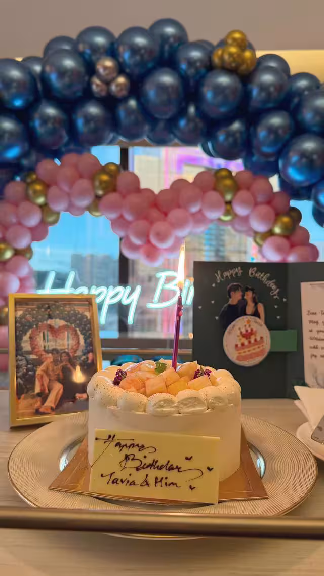 從事後當事人分享的動態中看得出,當天羅子溢專門在房間內布置了一番,扎滿了粉色和藍色的氣球,氛圍感十足,而且還有一個小蛋糕,蛋糕的款式比較簡單,不過也是其一番心意。