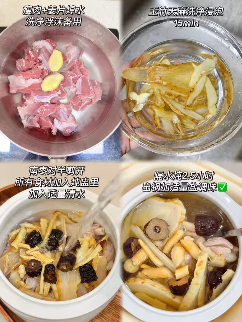 🔺建議隔三岔五喝一次,堅持一個多月。你還可以把瘦肉換成魚頭,補腦效果超棒~天麻功效眾多,煲出來的湯清甜可口,一點都不膩。