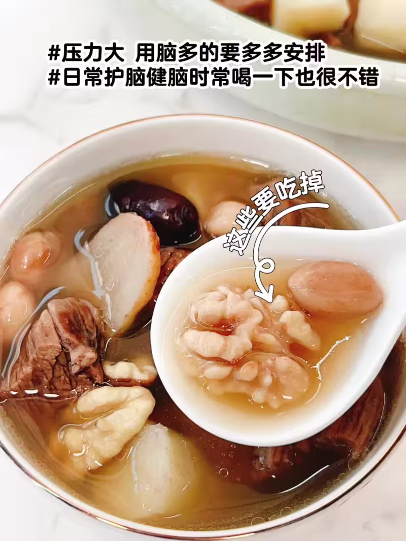 由於作息不規律和飲食不健康,大腦無法正常地自然補充能量。這時候,一定要安排上這款香濃美味的補腦湯。日常煲給大人、小孩和老人喝,對健腦都非常不錯。