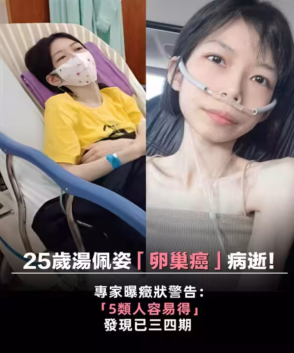 25歲湯佩姿「卵巢癌」病逝!專家曝症狀警告:「五類人容易得」發現已三四期