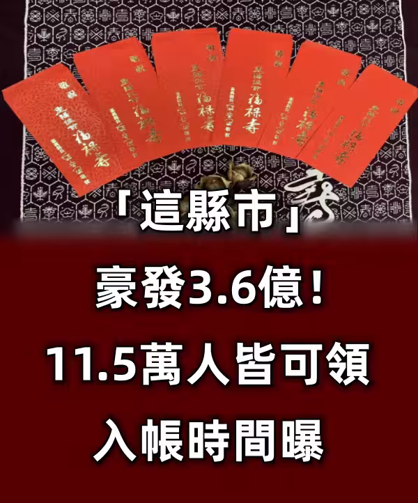 快訊/「這縣市」豪發3.6億!11.5萬人皆可領 入帳時間曝