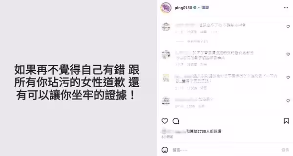 「用完了!奸完了!就說希望退回朋友?你真他X以為世界繞著你轉嗎?」「當下女生昏迷,她醒了,男方看到她沒事,還留了一句:『X!又在裝死,你繼續啦,我要走了,你要死,不要在我面前啦!』」最初江祖平發文踢爆#MeToo事件,結果案情演變成她其實是「公親兼事主」,其實都在為自己發聲,龔益霆引發公憤之際,檢警也介入調查。