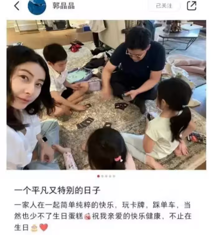 她感慨道:踩單車、玩卡牌,這就是一家人在一起簡單純粹的快樂。在此之前,網傳的「郭晶晶霍啟剛住著1.6億豪宅」曾一度引發全網熱議。