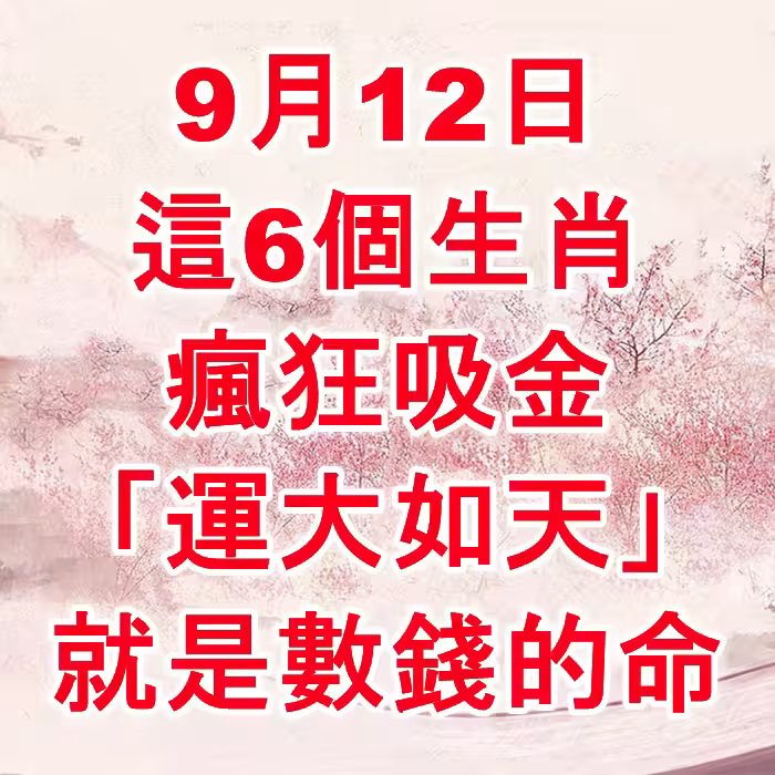 恭喜了7大生肖,在未來三天( 9月20~23日)即將有一筆橫財,準備好收錢吧