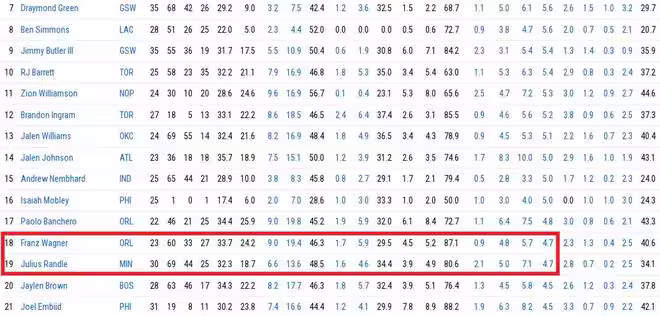 值得一提的是,蘭德爾場均還有4.7次助攻,和魔術小華格納並列鋒線球員中第18。湖人錯失一個場均20+即戰力,這是其一。