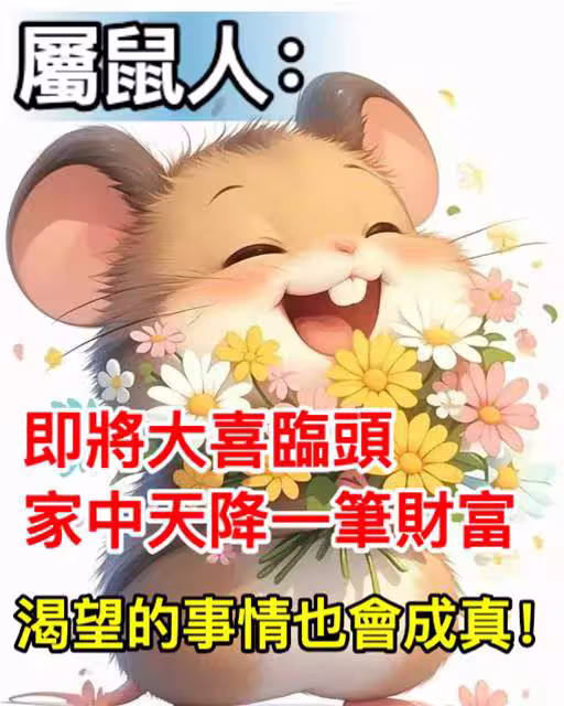 屬鼠人:即將大喜臨頭,家中天降一筆財富,渴望的事情也會成真!