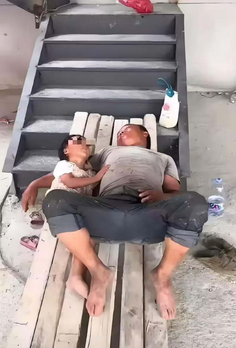 貧寒父女「擠木板」依偎感動全網,眼尖網友發現「1細節」後細思極恐:快查查這男人!
