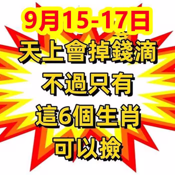 恭喜了7大生肖,在未來三天( 9月20~23日)即將有一筆橫財,準備好收錢吧