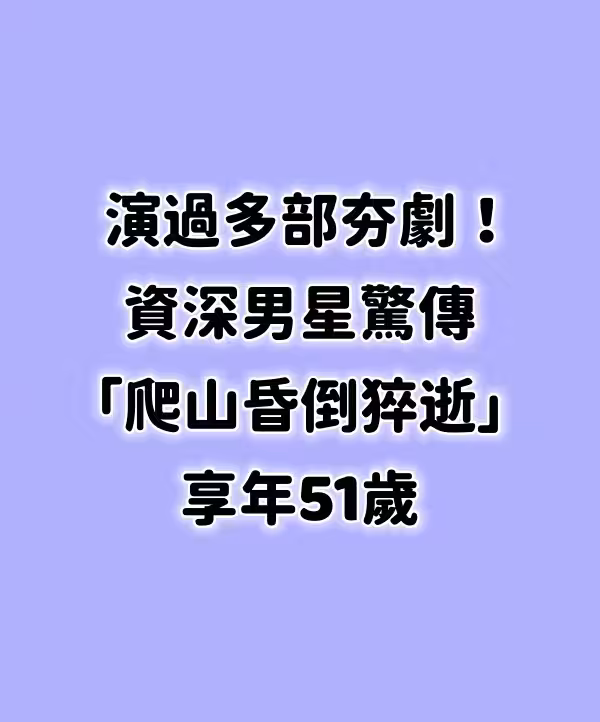 演過多部夯劇!資深男星驚傳「爬山昏倒猝逝」享年51歲