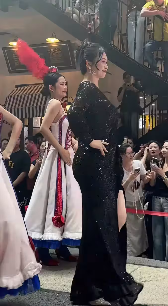 57歲翁虹景區跳舞「謀生」,穿緊身裙暴露真實身材,看著有150斤!