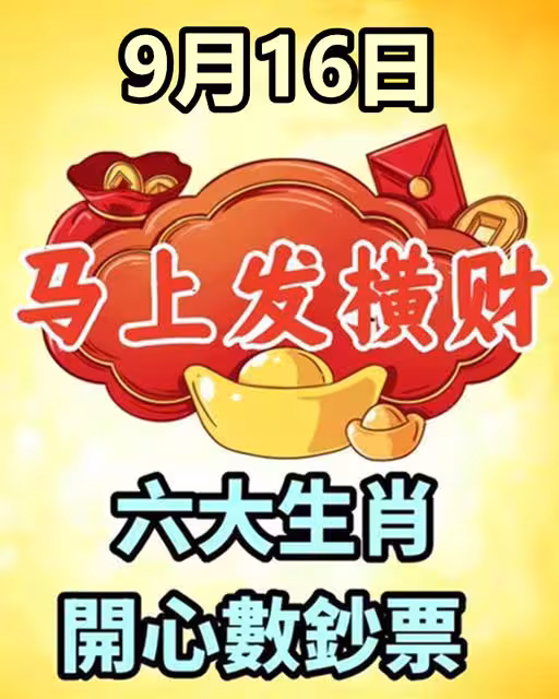 9月16日馬上發橫財,六大生肖開心數鈔票~
