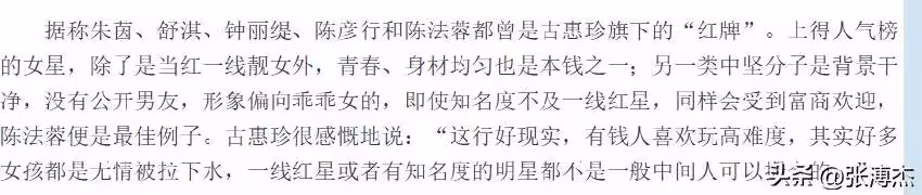 這次成功牽線讓古惠珍在業內聲名鵲起,官方給她起了個更正規的名字——「淫媒」,即專門充當富豪與女星「錢色交易」的接頭人。