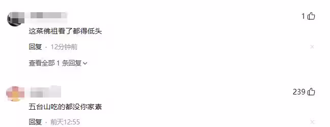 更有網友開玩笑道:「五台山吃的都沒你家素,佛祖看了都得低頭。」這些評論雖然帶有誇張和幽默成分,但也反映出網友們對菜品不滿的情緒。