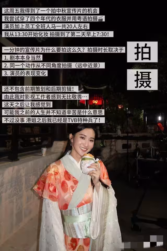 TVB港姐季軍率先獲安排拍宣傳片,連續拍攝18個小時,自稱特種兵