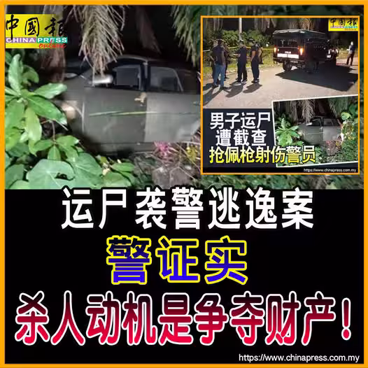 (安順20日訊)「運屍襲警逃逸」案,警方證實殺人動機是爭奪財產!