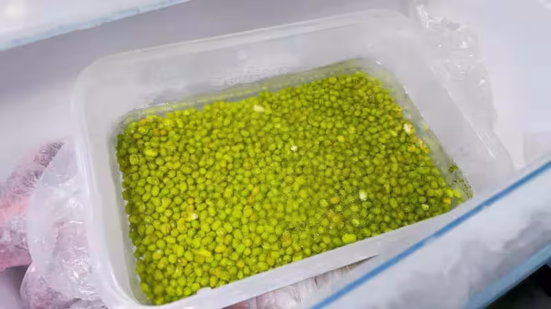 第四步:鍋中放入適量水,將水煮沸後,把凍好的綠豆全部放入鍋中,大火煮一會兒,直到綠豆有一點點開花就可以了。