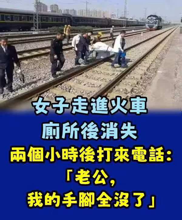 女子走進火車廁所後消失,兩個小時後打來電話:「老公,我的手腳全沒了」