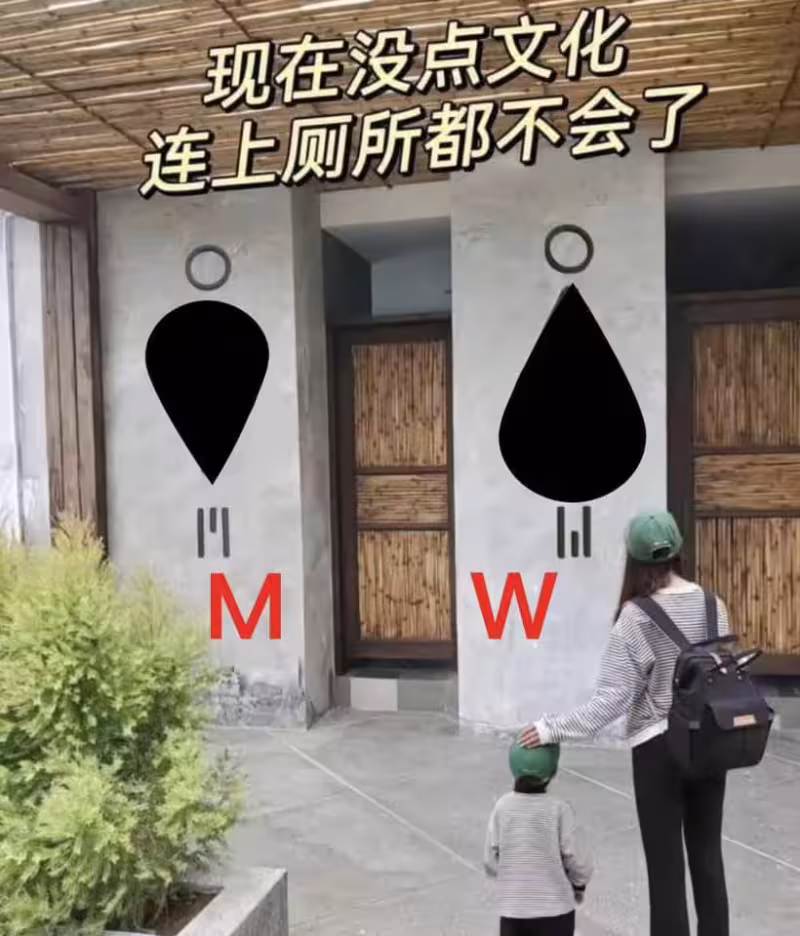 屎在滾了!沖廁所卻被「門口男女標示」考倒,她尷尬問:我到底該進哪一間