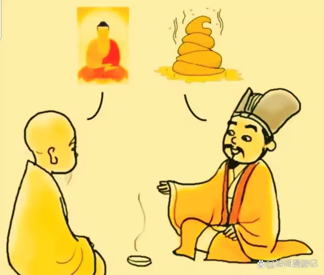 雖然他剛領受了一份恭維,理應投桃報李,無奈東坡是個直爽人,禁不住脫口而出:「和尚今天怎麼看起來活像一堆牛屎。」
