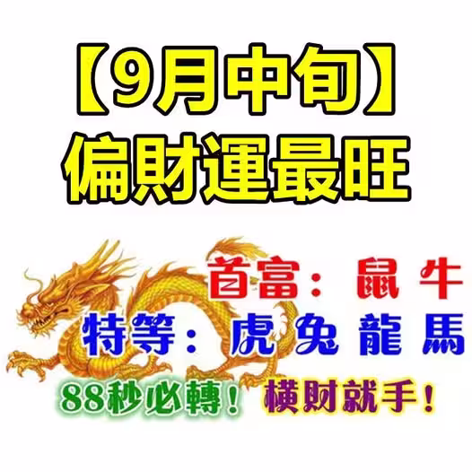 明天 「9月19號」 三生肖 橫財最旺 發久久~