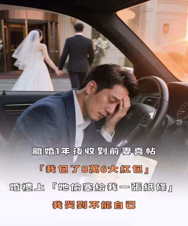 離婚一年後收到前妻喜帖!婚禮當天「我包了八萬六大紅包」 婚禮上「她偷塞給我一張紙條」我哭到不能自已