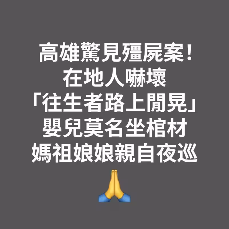高雄殭屍奇案!在地人驚曝「往生者路上閒晃」嬰兒莫名坐棺材, 媽祖娘娘「親自夜巡」如今仍有怪事