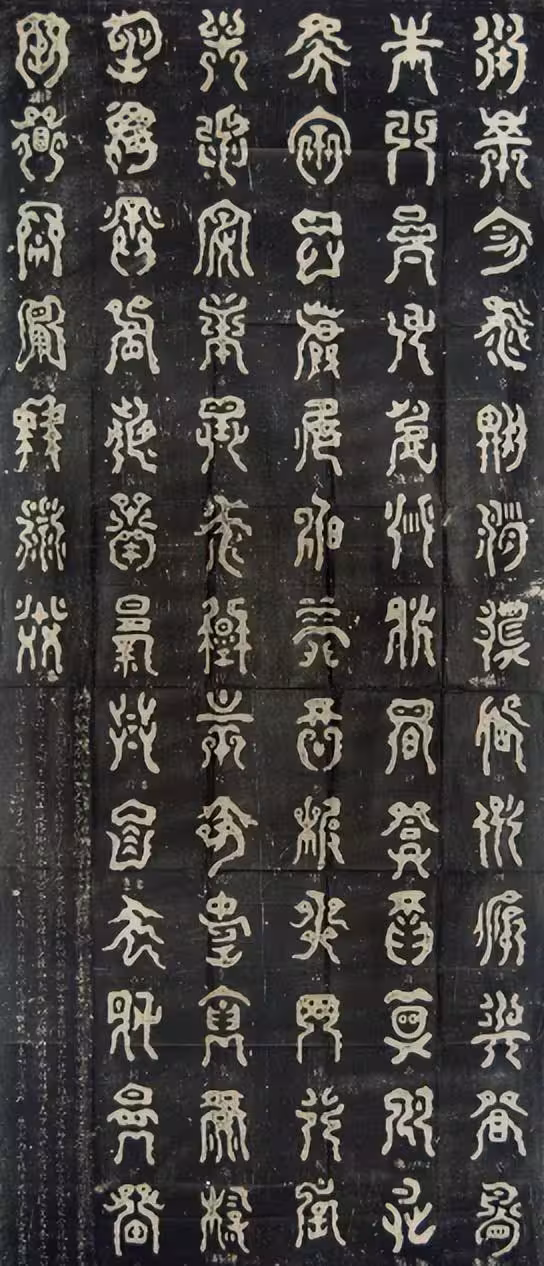 總之,沒統一意見,有人覺得是夏代真跡,有人說是戰國偽古,甚至宋代偽造。碑文字奇詭,類似鳥蟲篆,但走樣了,不是向壁虛造。
