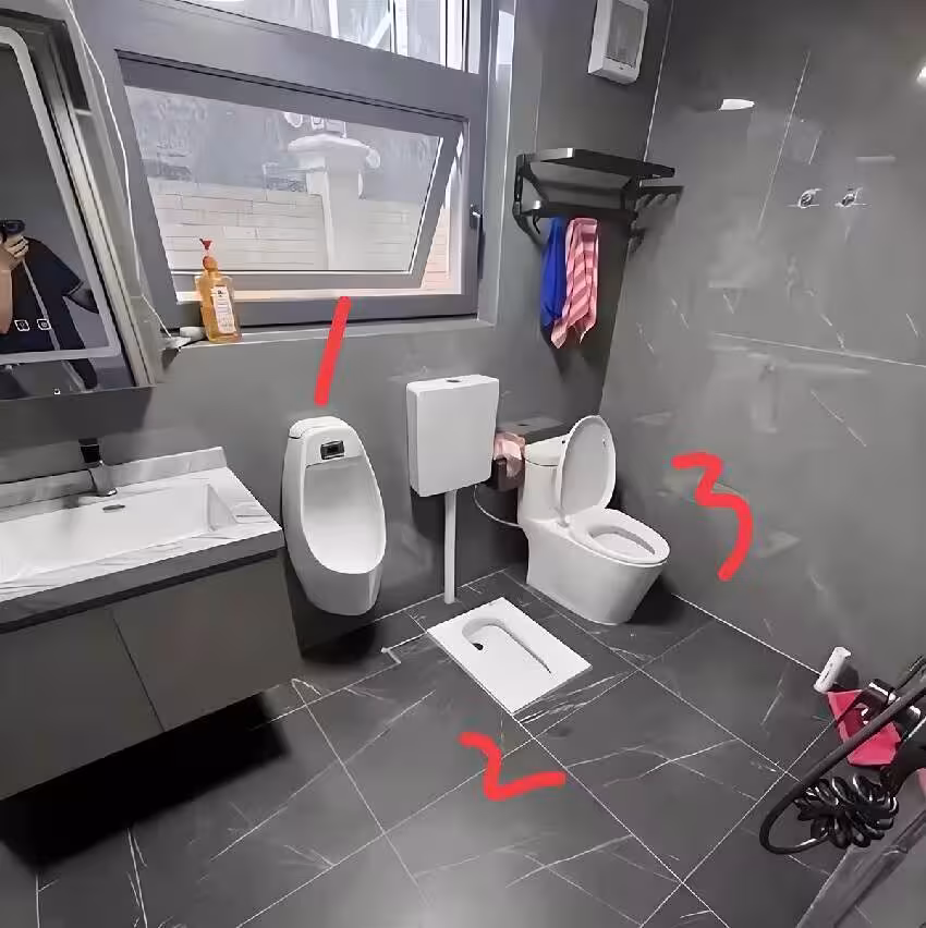 老婆拿著設計圖,興沖沖地告訴我她的「偉大計劃」:「老公,我們衛生間裡,馬桶、蹲廁、小便池,一個都不能少!」我當場就懵了,以為自己聽錯了。