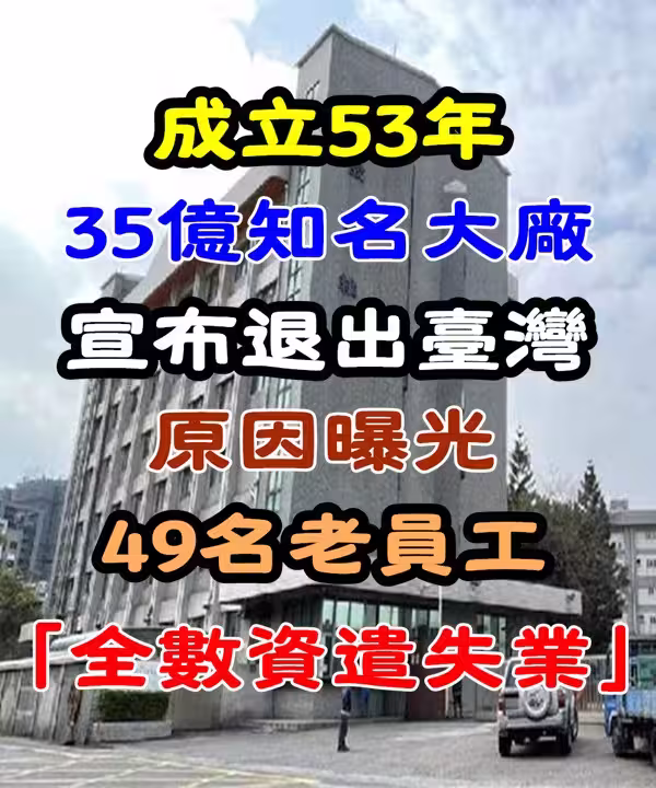 成立53年!35億知名大廠「宣布退出台灣」原因曝光 49名老員工「全數資遣失業!」