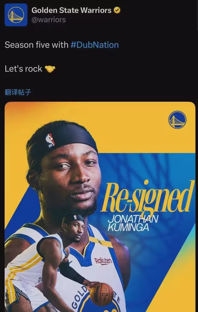 勇士終於出手了,17+7冠軍中鋒加盟勇士,庫里激動表態