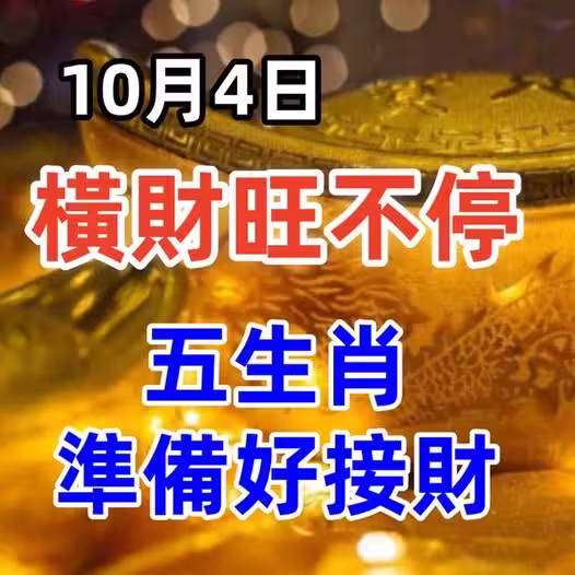 10月4日橫財旺不停,五生肖準備好接財