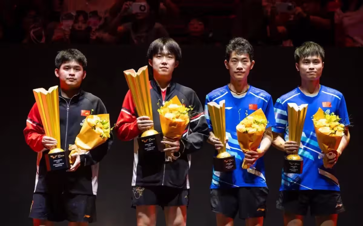 在前面已經決出了混雙、女雙、男雙的冠軍,全部被國乒獲得,並且女單也已經提前被國乒斬獲,決賽在孫穎莎和王曼昱之間展開,只剩下男單有懸念,四強上,國乒三人王楚欽、林詩棟、向鵬,另外一席是F勒布倫。