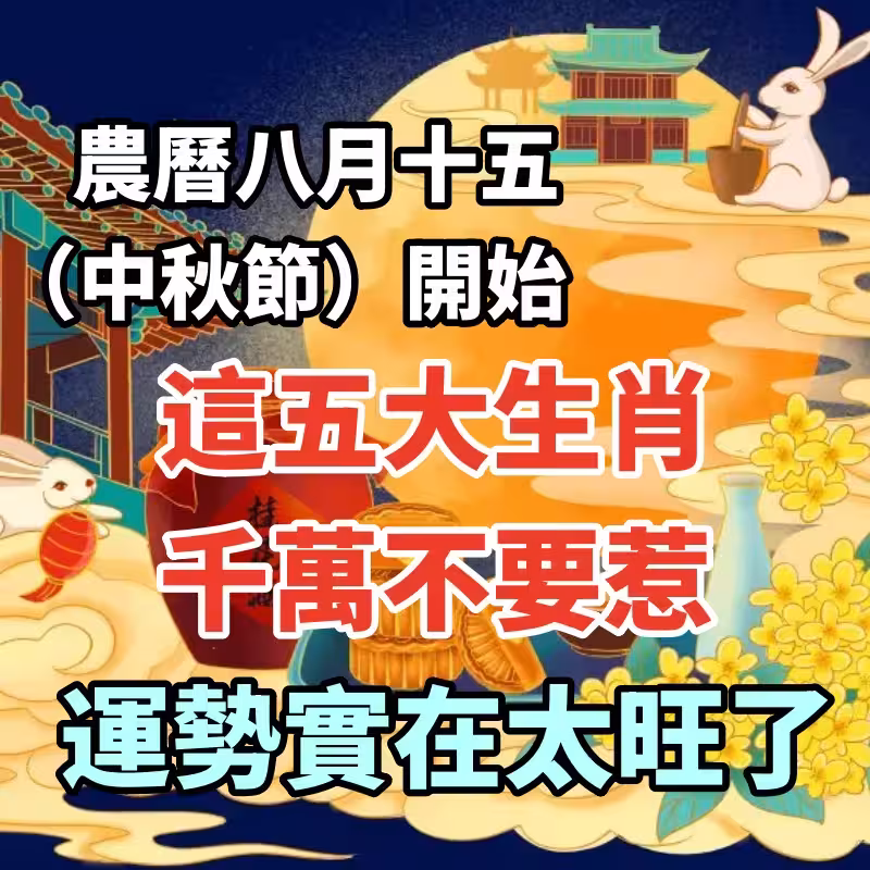 這五大生肖千萬不要惹!農曆八月十五(中秋節)開始運勢實在太旺了!