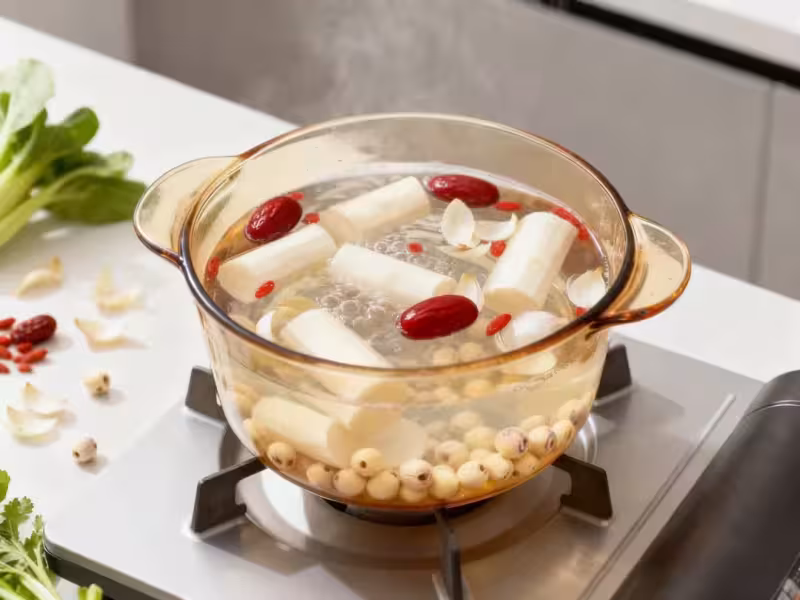 山藥百合蓮子湯恰好契合此時的養生需求:山藥健脾益氣,百合潤肺潤燥,蓮子養心安神,三者搭配既能滋養肺臟對抗燥邪,又能調理脾胃夯實基礎,還能安撫因季節交替易出現的煩躁情緒,全方位助力身體適應秋季變化,強化體質。