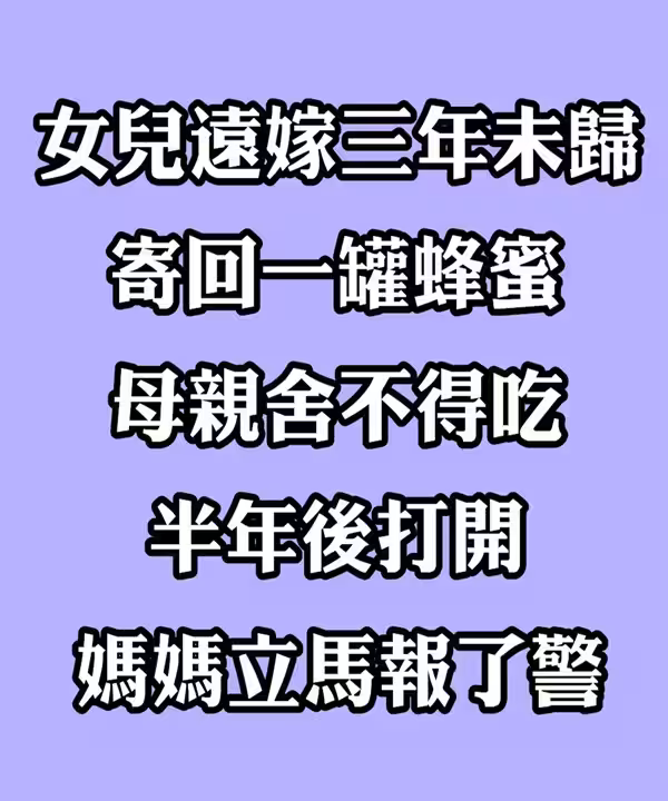 女兒遠嫁三年未歸,寄回一罐蜂蜜母親捨不得吃,半年後打開報了警...